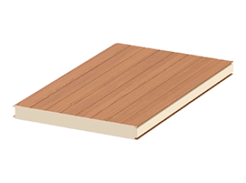 Трехслойная стеновая сэндвич-панель с PIR-наполнителем; цвет снаружи - золотой дуб; цвет внутри - RAL 9003