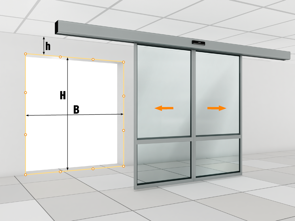 Комплект автоматической раздвижной двери (две подвижные, две неподвижные створки и фрамуга) для привода ad-sp — DoorHan